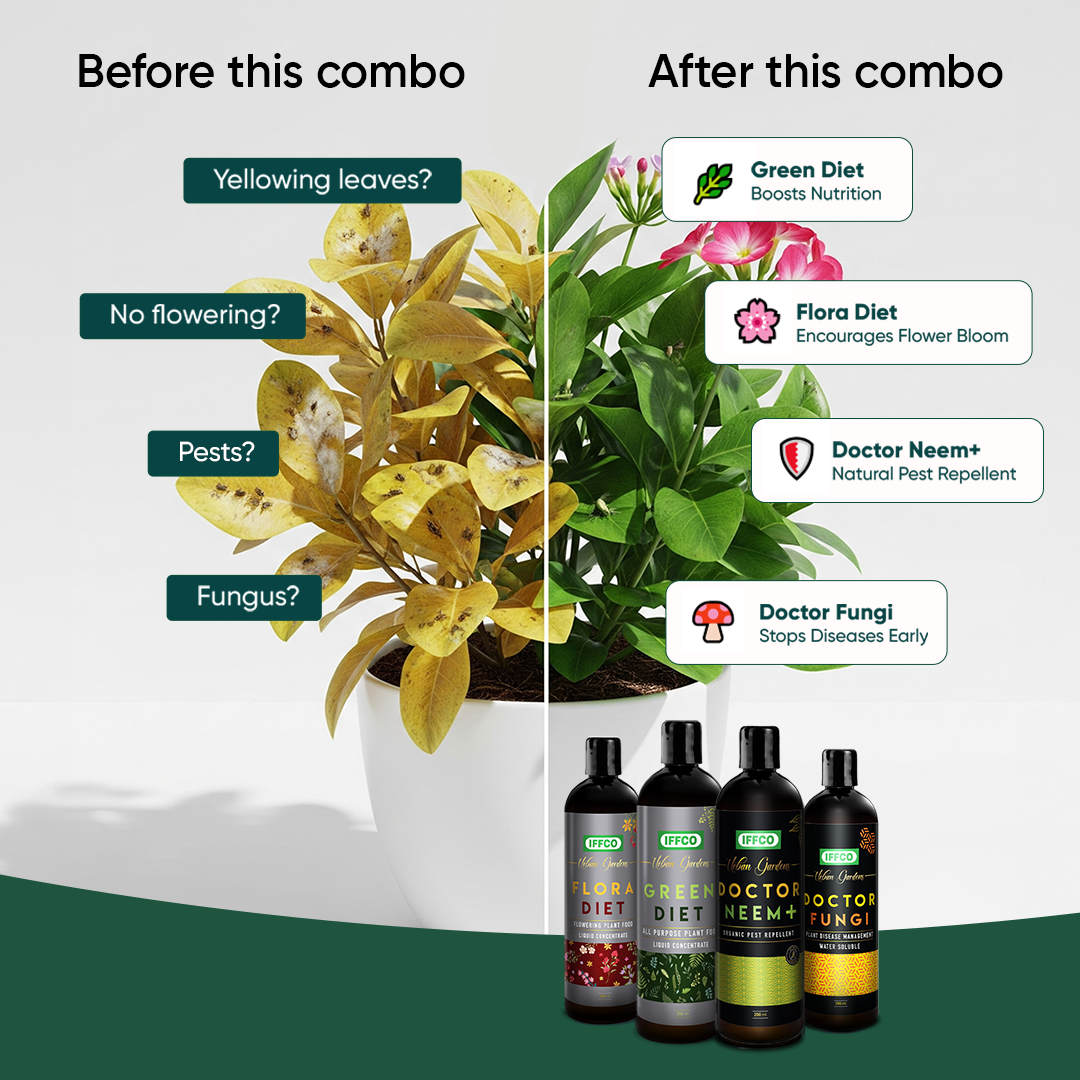 ABOUT GREEN DIET: Special Formulation to provide essential nutrients to boost healthy growth and lush greenery in plants ABOUT FLORA DIET: Special Formulation to provide essential nutrients to boost healthy flowering in plants DOCTOR NEEM+: is used to protect plants from sucking pests such...