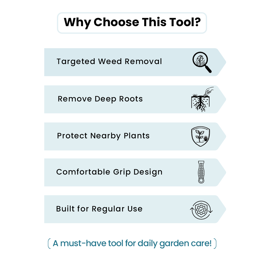 • Effective Weed Removal Tool – Designed to uproot weeds easily without disturbing nearby plants.